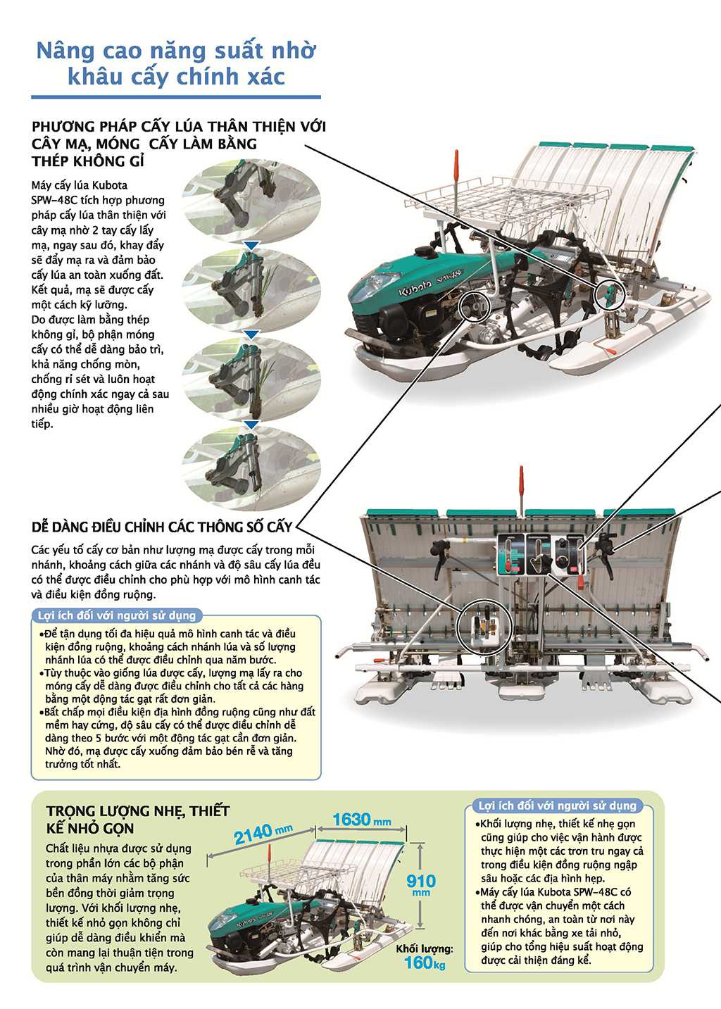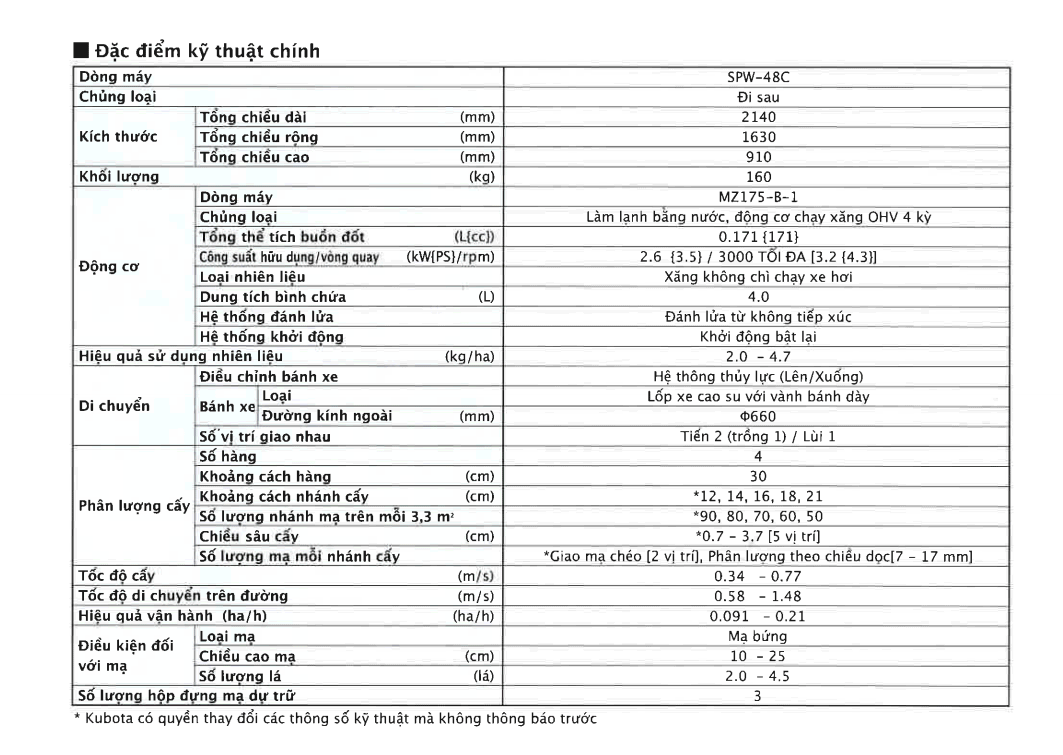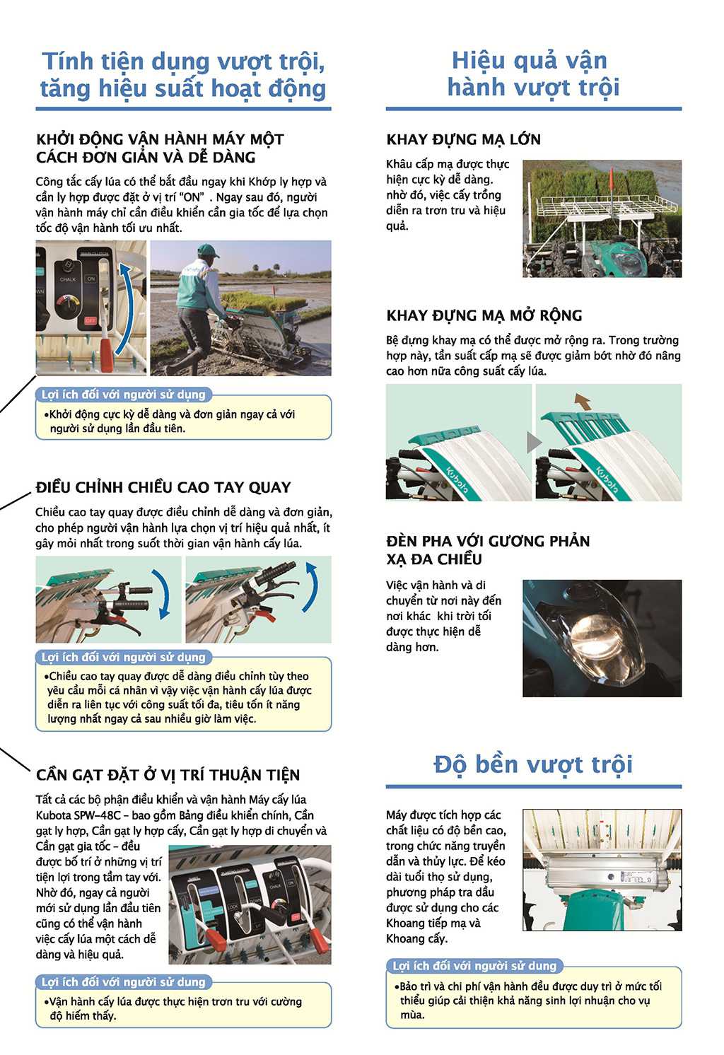 Máy cấy lúa Kubota SPW-48CC là sự lựa chọn lý tưởng cho bước đầu tiên thực hiện cơ giới hoá nông nghiệp, mở ra định hướng mới cho ngành nông nghiệp hiện đại và chuyên nghiệp.