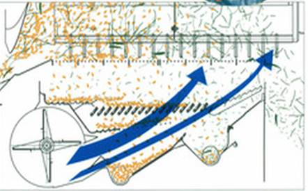 | Tính năng sàng ưu việt Hệ thống sàng bằng luồng khí dẫn lưu độc đáo của Kubota - Đưa luồng gió ổn định vào toàn thể khay sàng, giúp sàng lúa kỹ và sạch hơn, không làm cho hạt lúa bị vỡ hay tróc vỏ trấu. | ![]() |